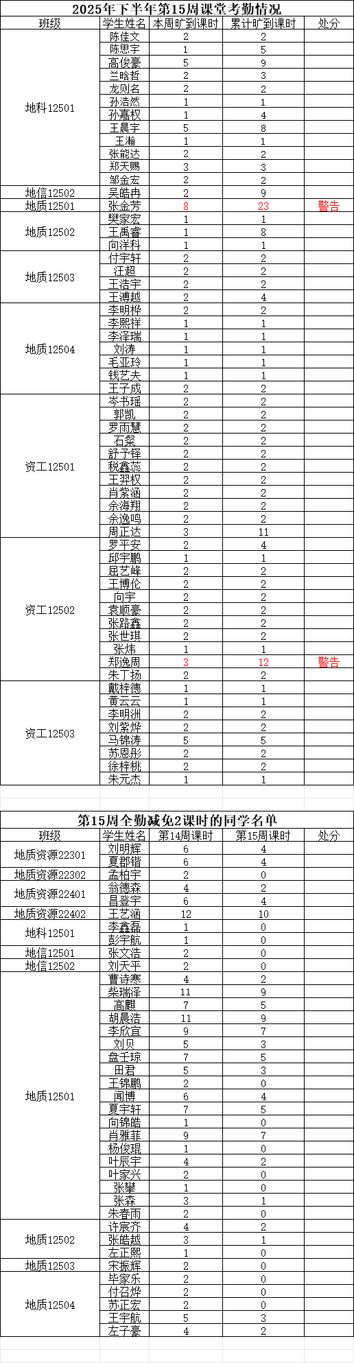 注:若学生某周存在旷课记录,但次周所有课程均正常到课(无迟到、旷课),则可从该生累计旷课课时中减免 2学时。