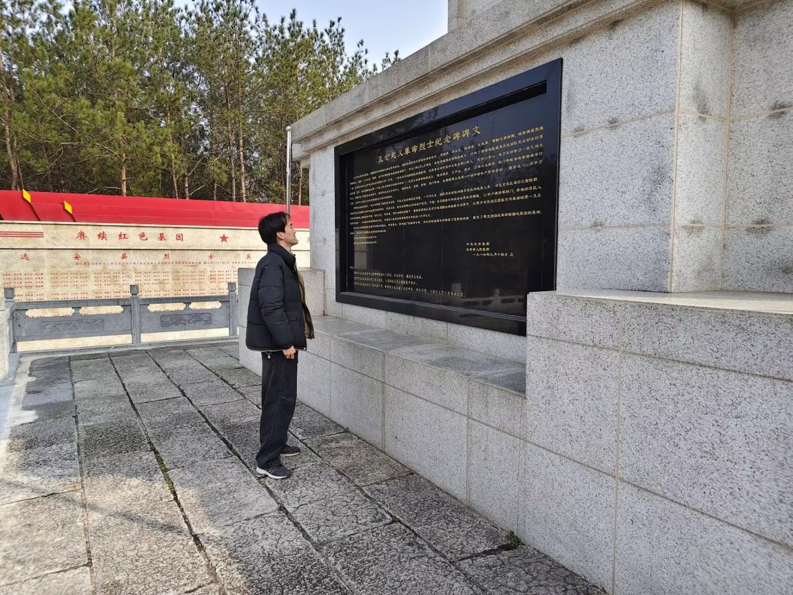 与此同时,徐心宇同学来到瓦仓起义纪念碑前缅怀先烈、感悟红色精神。碑身浮雕生动还原了起义的激烈场景,周围松柏苍翠,默默见证着这段革命历史。凝视着纪念碑,徐心宇同学深受触动,暗下决心要珍惜美好时代、锤炼过硬本领,传承先辈精神,努力成长为对社会有贡献的青年。