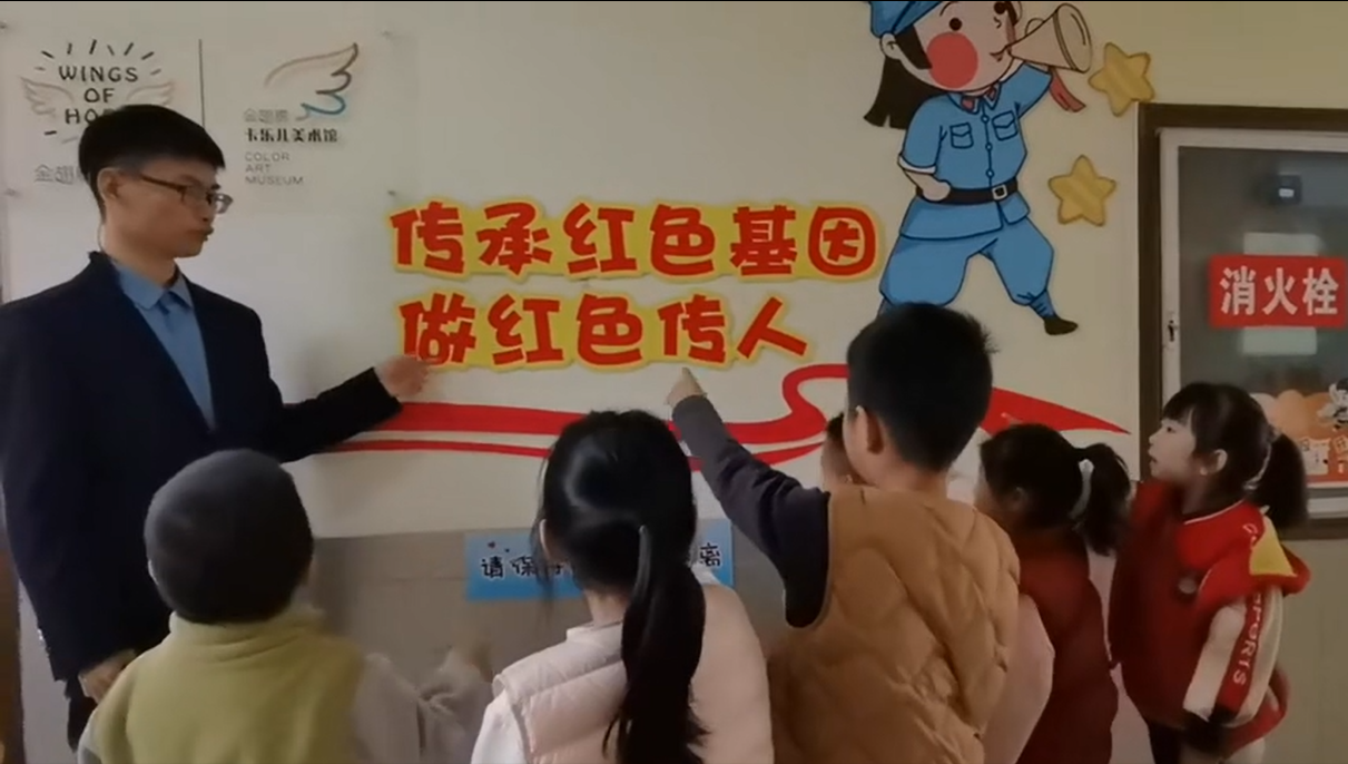 童心沐红风,初心植心间。学员刘英华走进校园主楼红色教育长廊,以 “党建引领、心育童心、家园聚力、筑梦启航” 为理念,为幼儿园大班孩子带来趣味红色宣讲。他以红船精神、《七律・长征》、抗日儿童团事迹、建国历程为脉络,用童趣化语言讲述红色故事,孩子们睁着好奇的双眼认真聆听、踊跃提问,稚嫩的童声里满是对革命先辈的崇敬。刘英华感慨,给孩子们讲红色故事既是传承红色基因,也是自我的精神洗礼,看着孩子们眼中的光,更懂青年作为红色火种传递者的责任与使命。