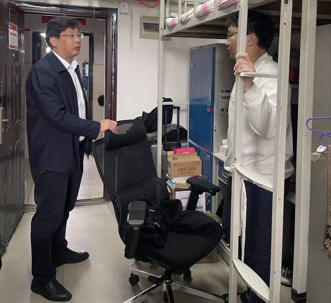 走访过程中,院领导与各年级学生亲切交流。针对毕业年级,重点询问考研复试、调剂及就业进展,解答备考求职困惑,学院将持续做好升学就业帮扶;针对研究生,详细了解科研、论文及就业准备情况,做好指导服务与保障;针对大三学生,聚焦专业提升、考研备考与职业规划,引导做好实践积累;针对大二学生,关注专业基础学习,督促夯实学业根基、端正学风。同时关切全体学生日常作息与宿舍生活,引导养成良好习惯,营造勤学向上、团结友善的宿舍氛围。