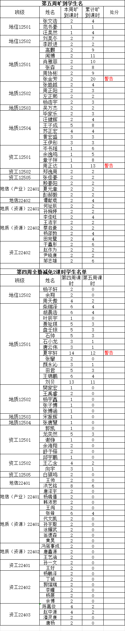 注:若学生某周存在旷课记录,但次周所有课程均正常到课(无迟到、旷课),则可从该生累计旷课课时中减免 2学时。