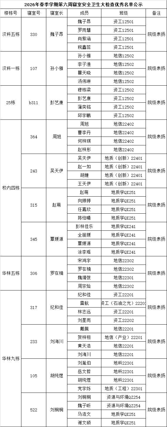 为加强学生宿舍安全管理和文明建设工作,确保学生宿舍安全、整洁、文明、有序,根据学校要求,我院于4月9日开展了第6周学生宿舍自查工作,现将检查情况通报如下
