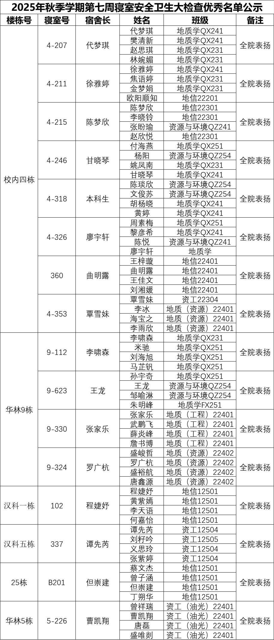 一、通报优秀寝室