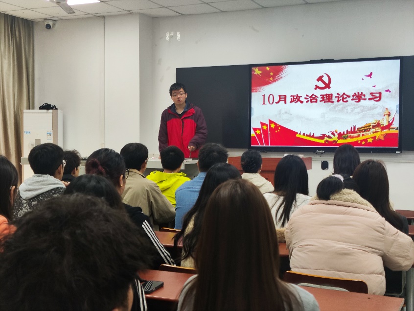 会上,陈一博同学带领大家集中学习了以下八项内容:1.庆祝中华人民共和国成立76周年招待会在京举行 习近平总书记发表重要讲话;2.习近平对党校(行政学院)工作作出重要指示强调 坚持党校姓党牢记党校初心 更好为党育才为党献策;3.习近平给天津大学全体师生回信强调 聚焦国家重大战略需求 提高人才培养质量 更好服务经济社会发展;4.《习近平谈治国理政》第五卷;5.王忠林主持省委理论学习中心组集体学习 深入学习《习近平谈治国理政》第五卷 自觉做新时代党的创新理论的坚定信仰者和忠实实践者;6.王忠林主持研究全省教育高质量发展工作 坚持立德树人把牢正确办学方向 切实抓好教育强省建设办好人民满意的教育;7.中共中央印发《中国共产党思想政治工作条例》;8.长江大学师德师风建设系列文件。