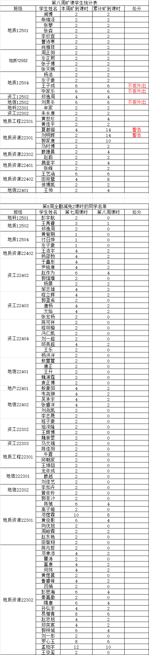 关于第八周课堂考勤的通报