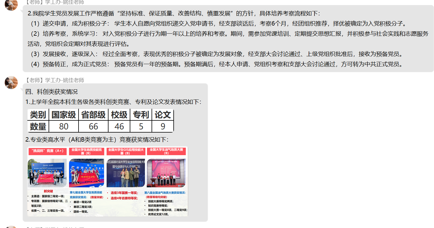 会议紧紧围绕“学情反馈”与“协同育人”两大核心展开,内容涵盖学生在校学习、生活、思想等多个关键维度,全面呈现学生成长面貌。在成果展示环节,学院详细通报了上学年优秀集体与个人的评选结果,清晰公示奖助学金发放情况,并同步说明本学期奖助学金的评定标准与进展,让家长直观了解学生的学业成就与荣誉获得情况。同时,会议还介绍了各年级入党积极分子及党员发展现状、科创类竞赛获奖成果,展现出学生在思想进步与创新实践中的积极风采。