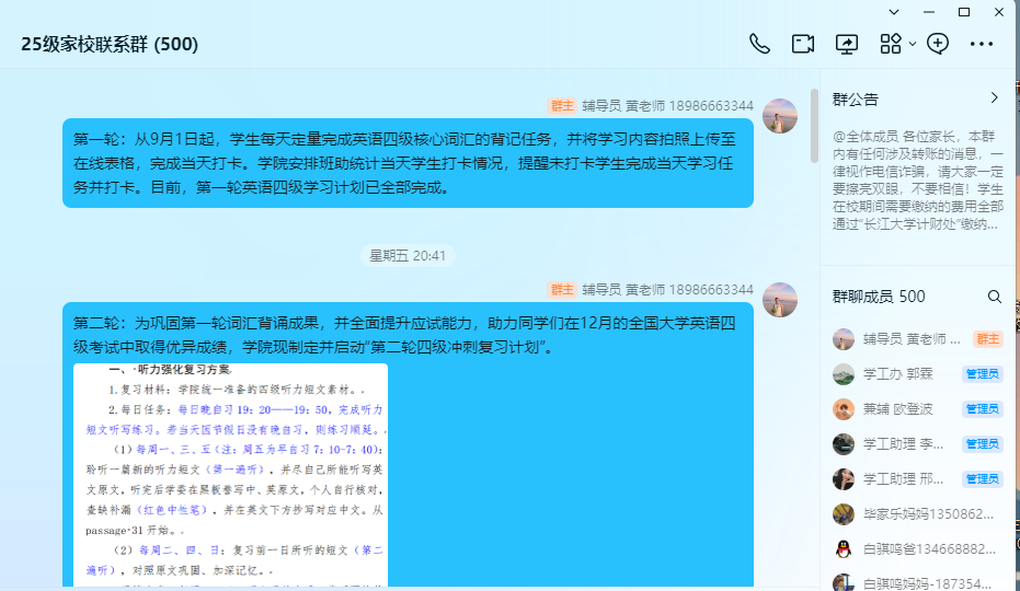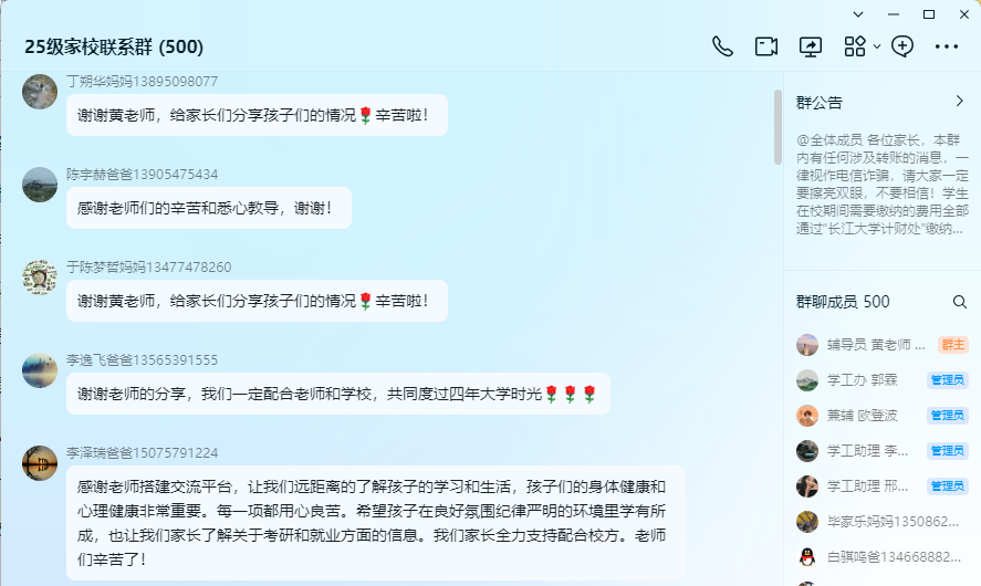 (通讯员 欧登波)为持续加强家校沟通,凝聚育人合力,推动学生全面发展。11月14日晚20:30,我院召开了2025级本科生线上家长会。会议由年级辅导员黄瑱主持,近500名学生家长参与活动。