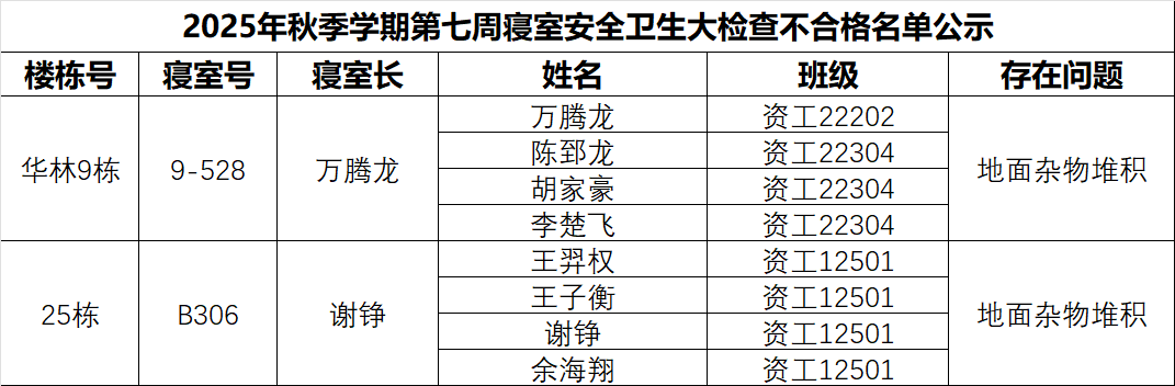 为加强学生宿舍安全管理和文明建设工作,确保学生宿舍安全、整洁、文明、有序,根据学校要求,我院于10月23日开展了第7周学生宿舍自查工作,现将检查情况通报如下